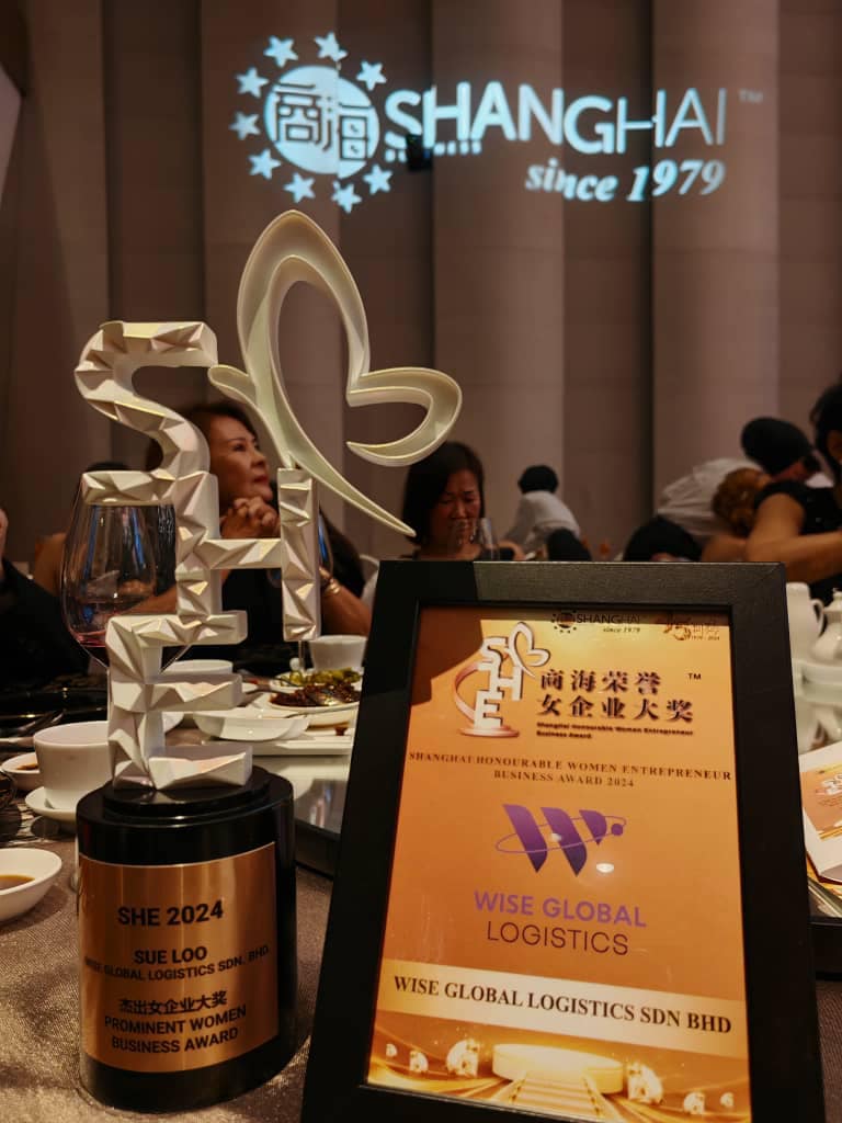 Wise Global Logistics Sdn Bhd proudly celebrates a momentous achievement as its founder, Miss Sue Loo, is honored with the Prominent Women Business Award at the ShangHai Honourable Women Entrepreneur Business Awards (SHE Awards). This prestigious accolade recognizes Miss Sue Loo’s visionary leadership, entrepreneurial spirit, and unwavering commitment to excellence in the logistics industry. Through her innovative strategies and dedication, she has not only propelled Wise Global Logistics to new heights but also set a benchmark for women entrepreneurs across the region.